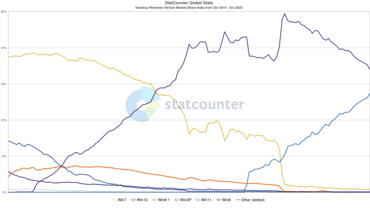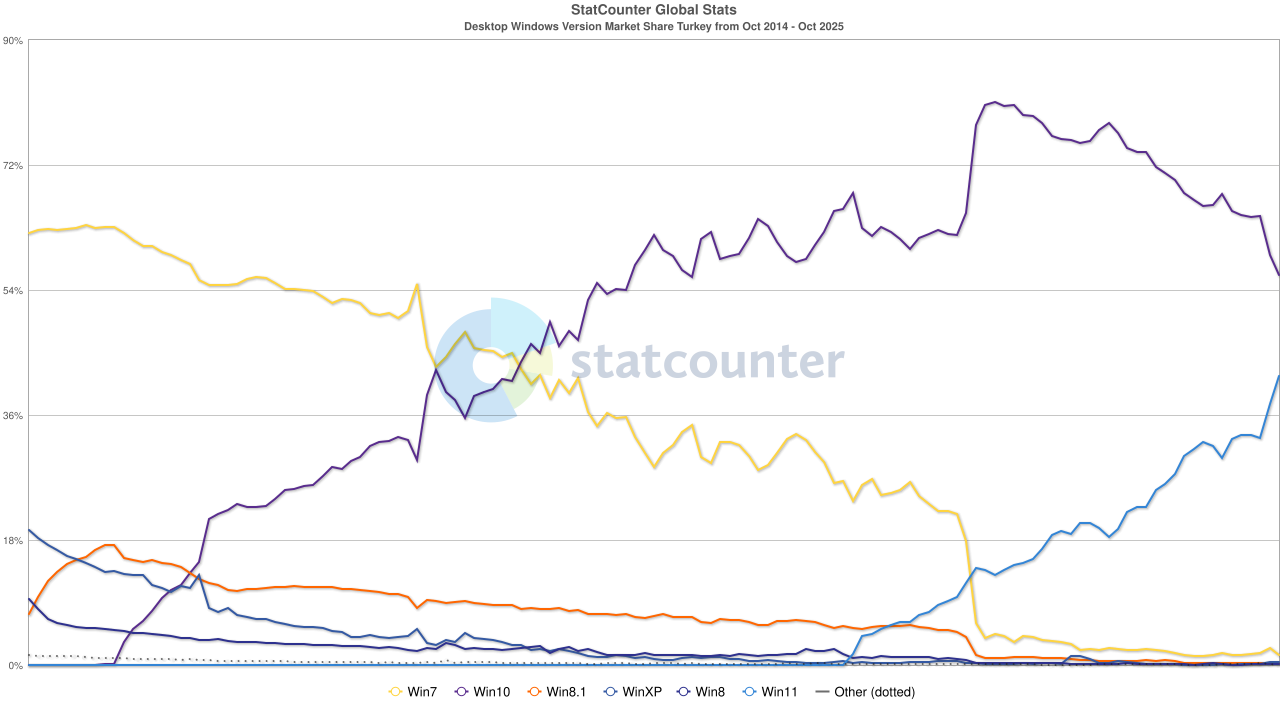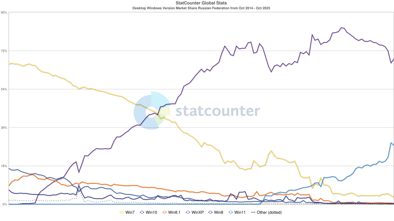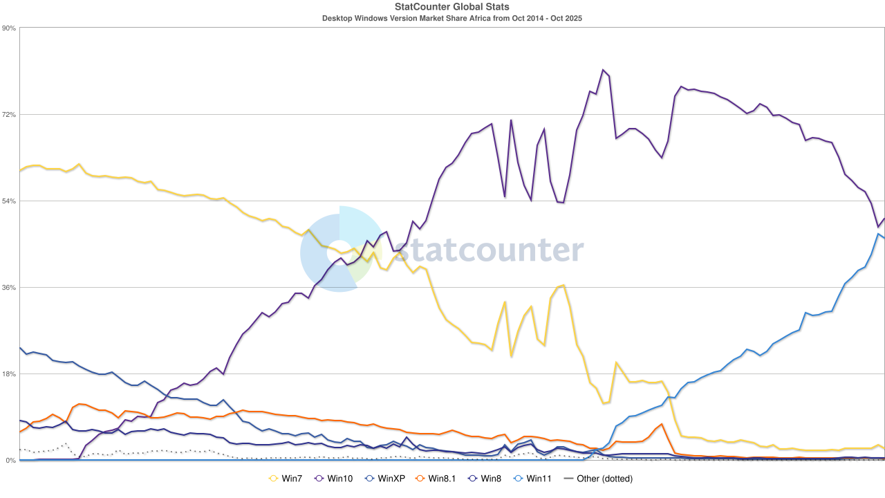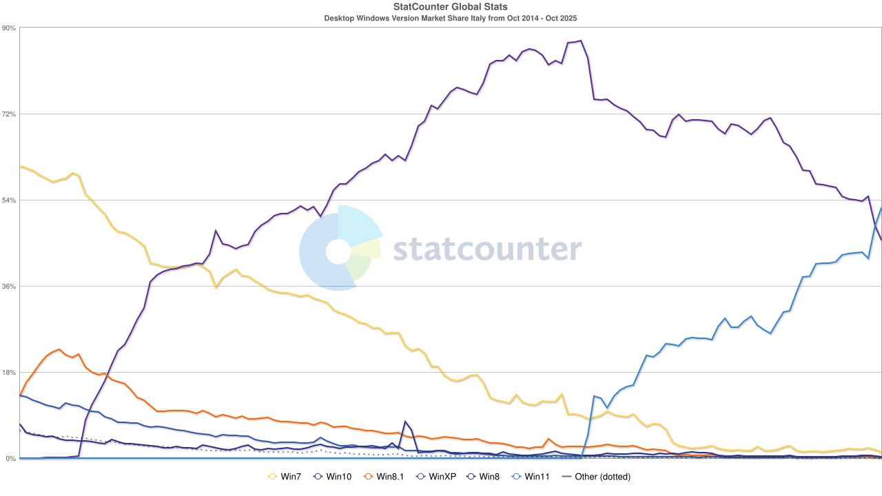 Pour ce qui est des parts de marché, la veille de la fin de support de Windows 10 (hors mises à jour de sécurité étendues), en France, Windows 11 vient de passer devant Windows 10.