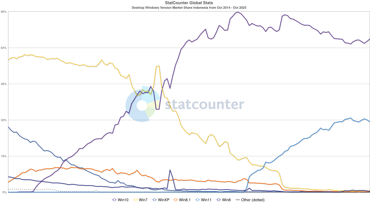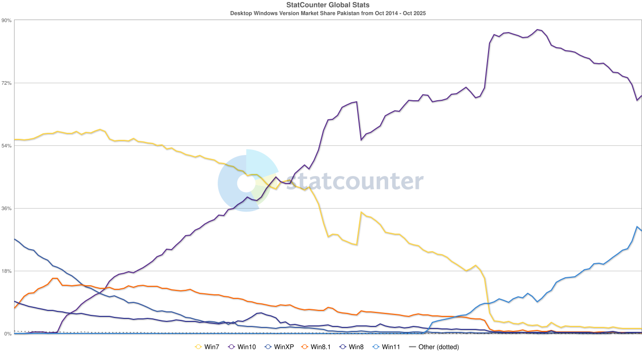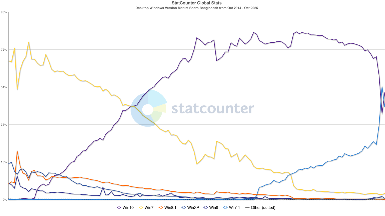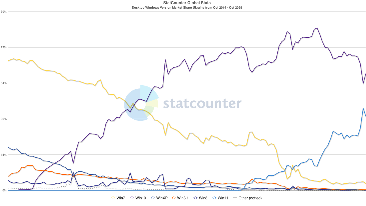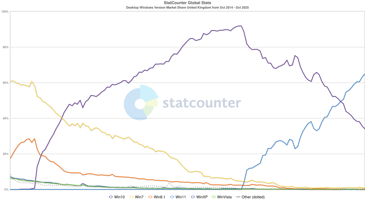 Pour ce qui est des parts de marché, la veille de la fin de support de Windows 10 (hors mises à jour de sécurité étendues), en France, Windows 11 vient de passer devant Windows 10.