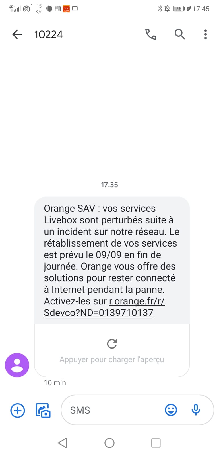 Orange annonce un incident au niveau de la région et un rétablissement à partir du 09/09. Je suis preneur si quelqu'un à plus d'information.